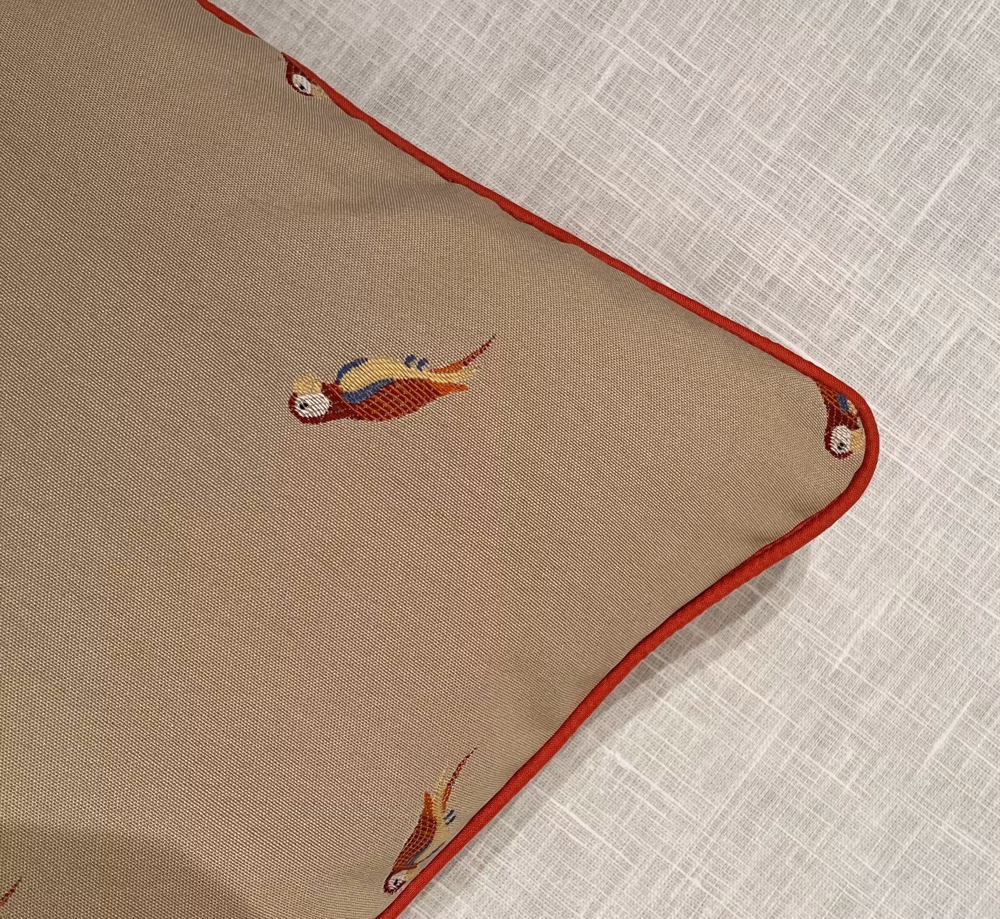 Storlek 50x50, innerkudde i fjäder, passpoal ton i ton, i lager 1 styck, pris 890:-