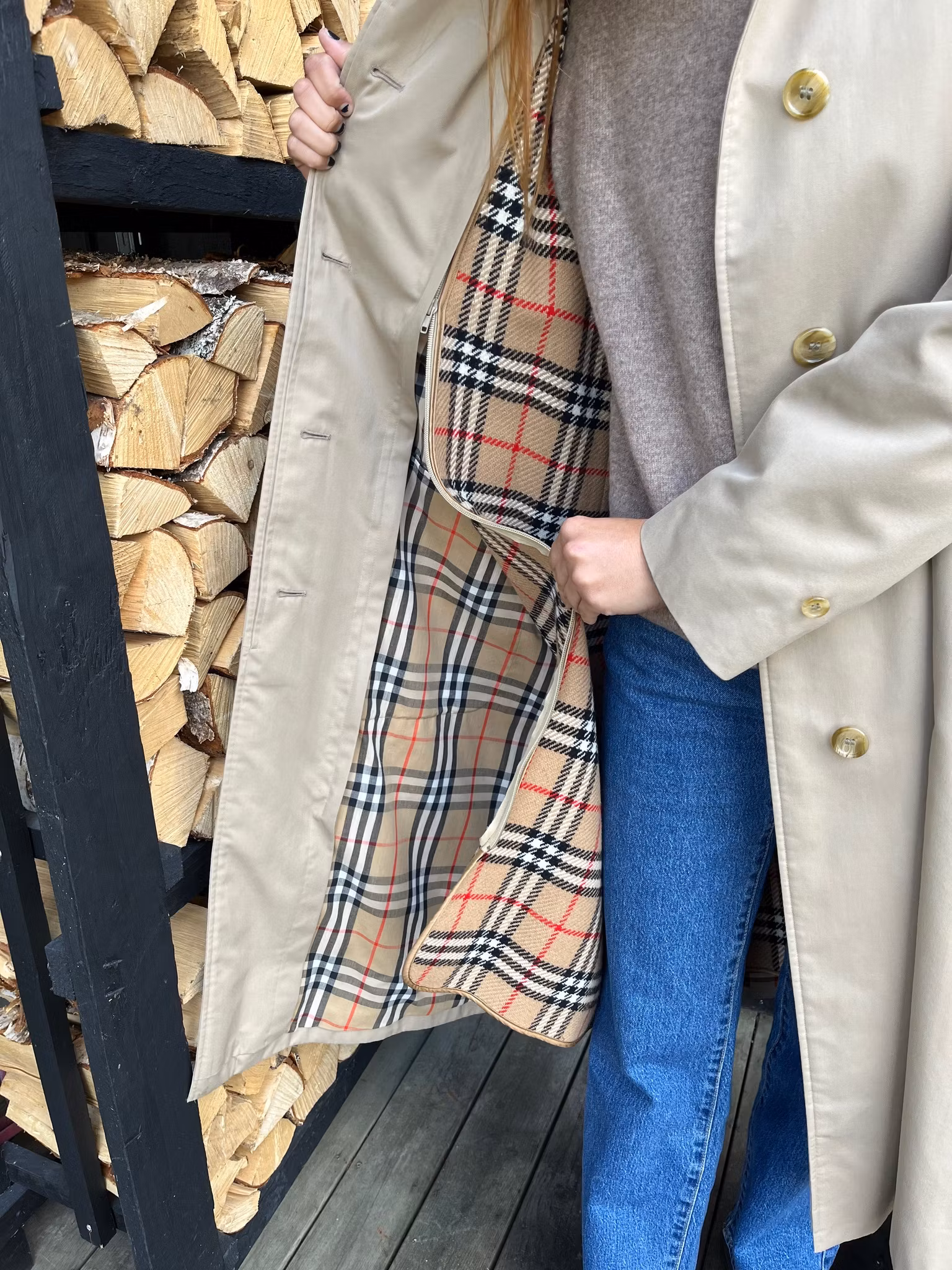 Burberrys original slip on rock, vintage, kemtvättad. Material 51%bomull 49%polyester, fast foder 50%bomull 50%polyester, löstagbart foder i 100% ren ull,